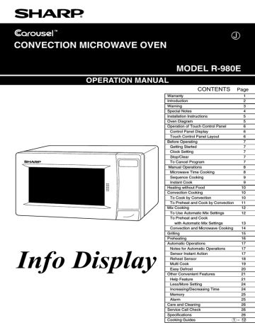 Read sharp operation manual convection microwave Printed Access Code PDF